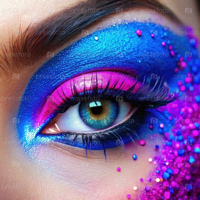 Глаз женщины с фиолетовым и синим макияжем