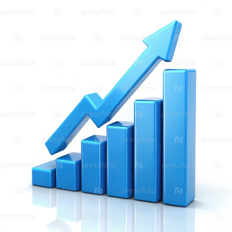 Синий штрих-график с восходящей стрелкой, генерирующей ИИ