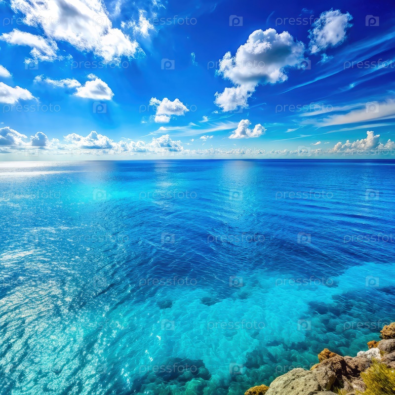 Красивый голубой океан с облаками в небе, генерирующий ИИ