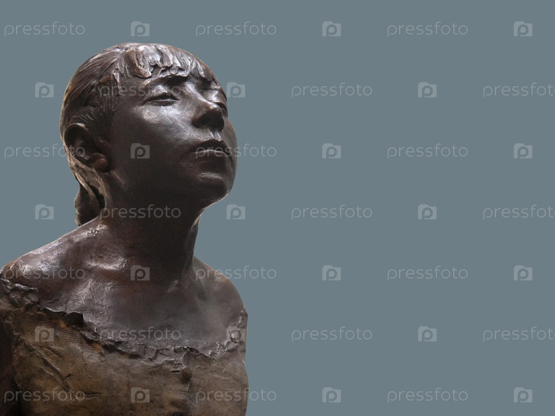 Бронзовая статуэтка маленькой балерины изолирована на сером фоне