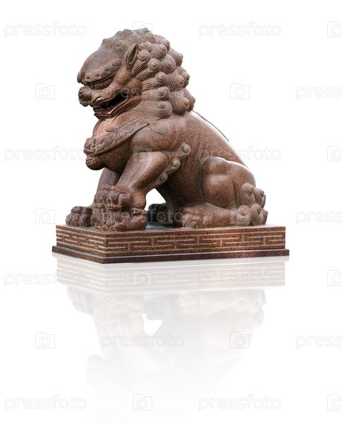Китайская каменная статуя на гранитном пьедестале изолирована на белом фоне