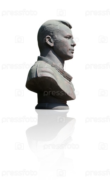 Бюст Юрия Гагарина изолирован на белом телефоне