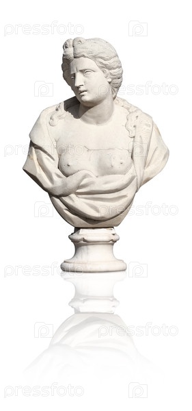 Мраморный бюст древней богини или героини изолирован на белом фоне