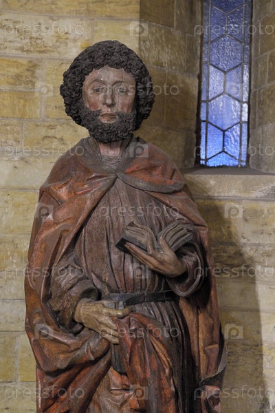 Готическая деревянная статуя святого в историческом интерьере базилики