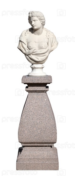 Мраморный бюст древней богини или героини изолирован на белом фоне