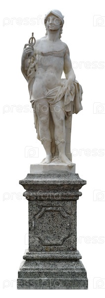 Мраморная статуя бога торговли Меркурия (Гермес) изолирована на белом фоне