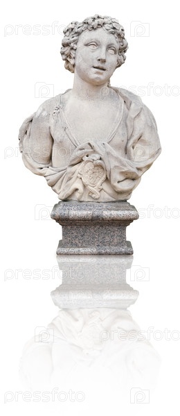 Мраморный бюст древнего бога или героя изолирован на белом фоне