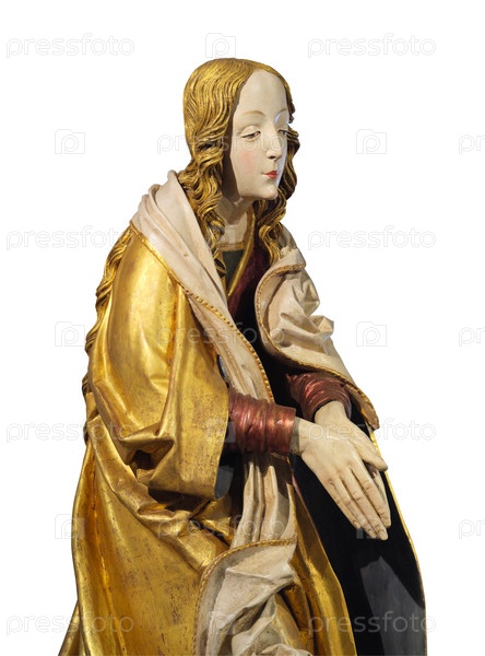 Богородица на коленях от алтаря Рождества Господнего мастером Павлом Левочским, изолированный на белом фоне, высокое разрешение, очертание сорняков