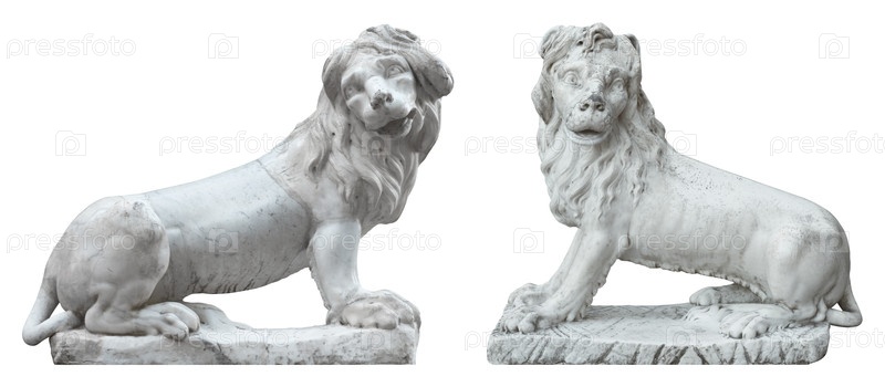 Статуя каменного льва изолирована на белом фоне
