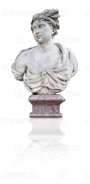 Символический мраморный бюст (аллегория летних месяцев) на гранитном постаменте на белом фоне