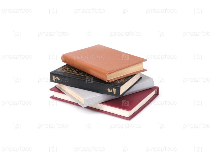 Куча книг в цветных обложках с белыми листами, изолированными на белом фоне