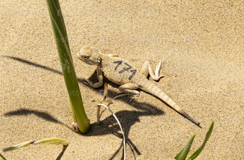 Уникальный вид ящериц, отдыхающих на песчаной местности с растительностью