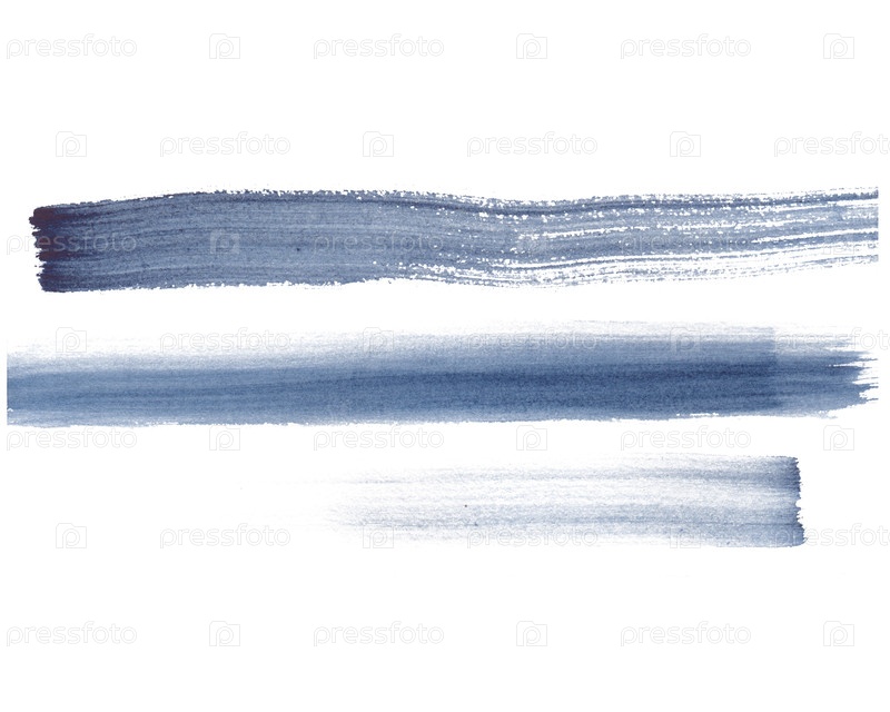 Набор из трех акварельных полос различной длины на изолированном фоне. Акварельная иллюстрация серо-голубых темных мазков краски. Клипарт с художественными акварельными пятнами для вашего дизайна