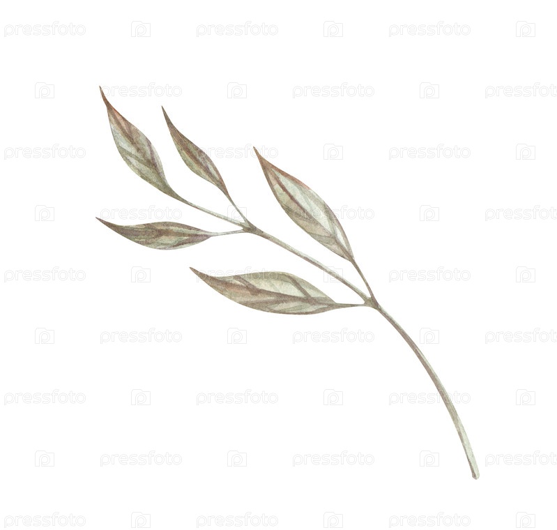 Единая акварельная ветка с зелеными листьями на изолированном фоне. Клипарт, изображающий растение в его естественном цвете. Ботанический элемент для открыток и приглашений