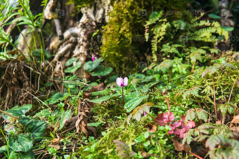 Цветущий цикламен в лесу