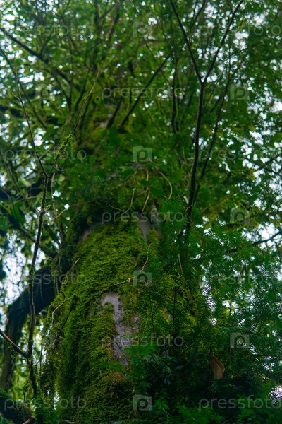 Зеленый мх на стволе дерева в тропическом лесу