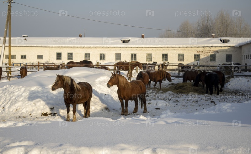 Стадо коней в загоне