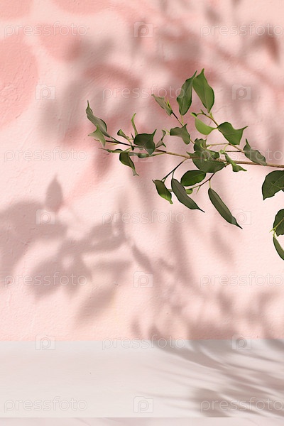 Премиум пустой подиум с тенями тропических пальмовых листьев на солнечной стене, минимальный абстрактный фон для презентации косметической продукции, шаблон дизайна, подиум на пьедестале, селективный фокус