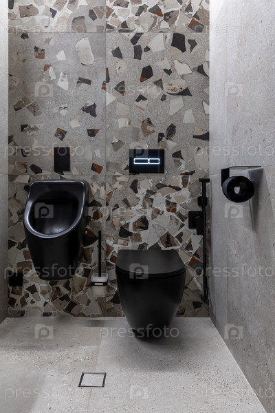 Современный черный туалет и мочеиспускание с помощью Terrazzo Tiles