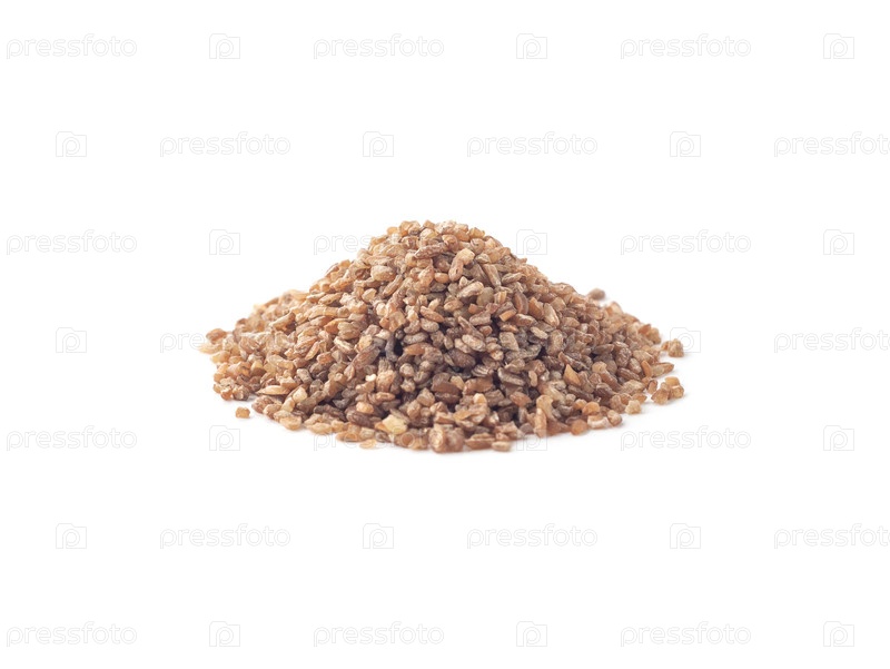 Куча семян красного булгура выделена на белом фоне
