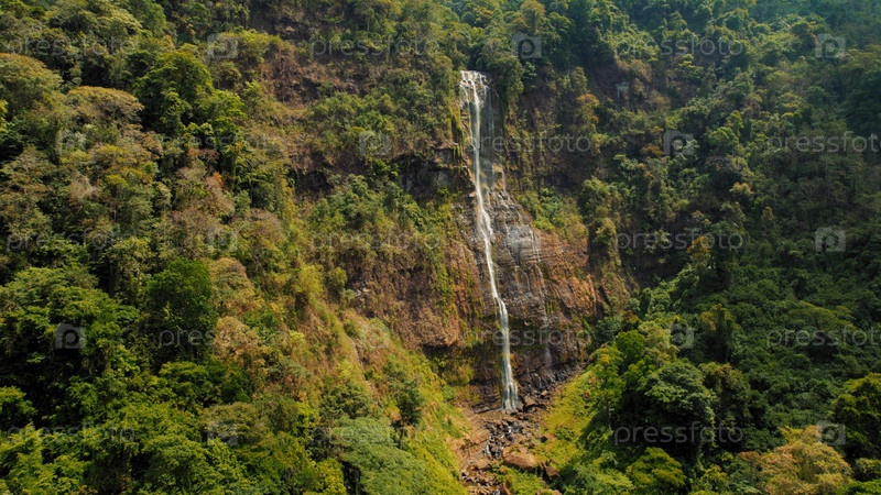 Вид с воздуха на водопад Диаманте, каскадирующий через пышные джунгли в Коста-Рике