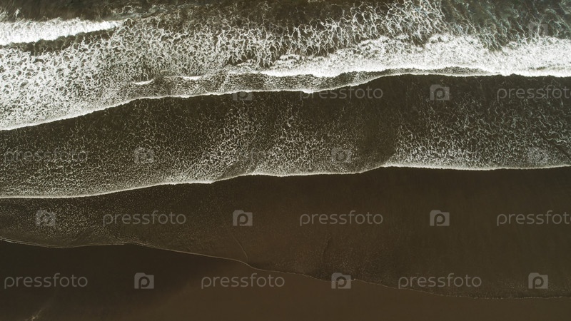 Абстрактные воздушные линии океанских волн на темном песчаном пляже в Коста-Рике в пасмурные сумерки