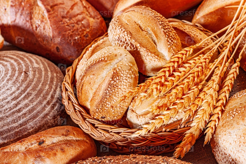 Свежий хлеб. В ассортименте хлебобулочных изделий буханки хлеба и рулоны
