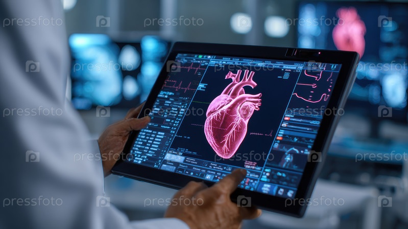 Высококвалифицированный медицинский работник тщательно анализирует сложные сканы сердца с использованием современных технологий