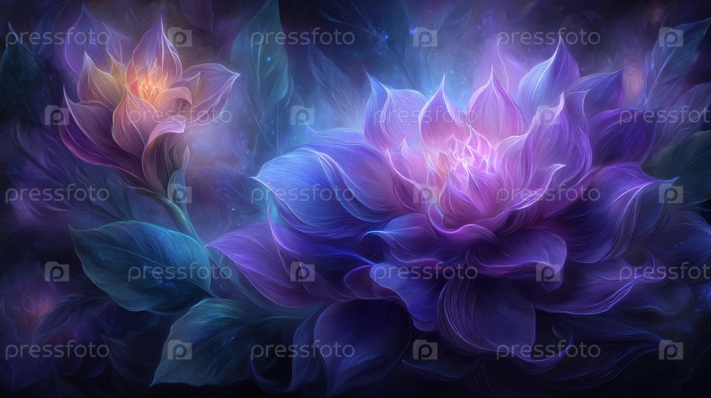 Яркие космические цветы лотоса красиво излучают звездное свечение, установленное на завораживающем небесном фоне