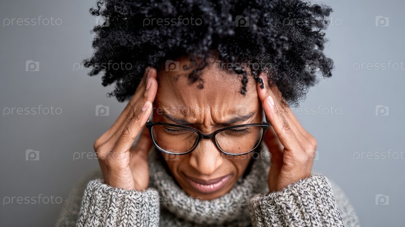 Женщина, эмоционально перегруженная, помещает руки на свое лицо, когда испытывает глубокое чувство стресса