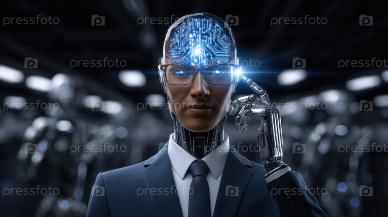 Высокоразвитый, футуристический гуманоидный робот с сложной схемной системой мозга