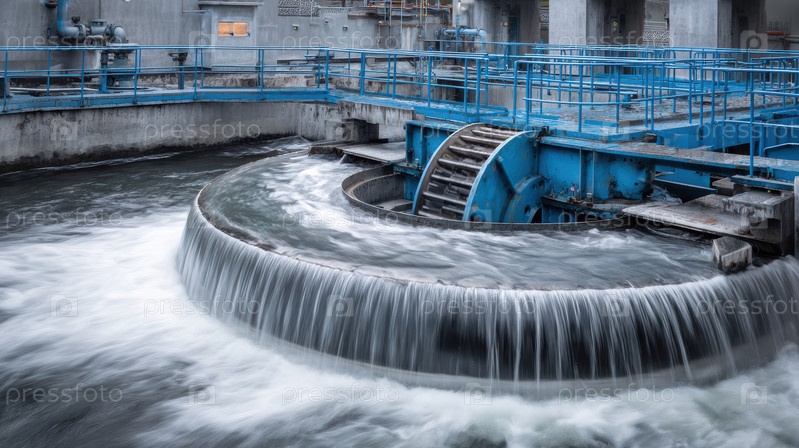Промышленное водяное колесо в действии Подробное описание механической энергии и потока воды в движении