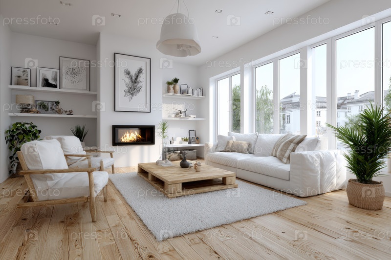 Современная гостиная, которая демонстрирует уютную мебель, теплую атмосферу и обилие естественного света
