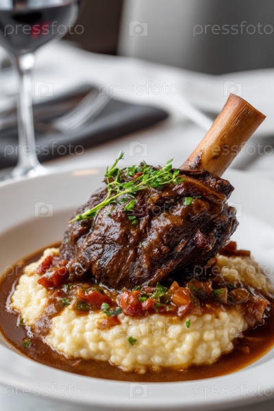 Вкусный ягненок Savory Lamb Shank Восхитительно подается на Creamy Polenta В сопровождении Rich Mushroom Соус