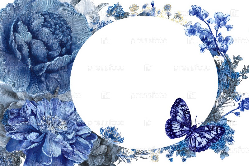 Этот красивый синий цветочный дизайн идеально подходит для приглашений, открыток и различных декоративных применений