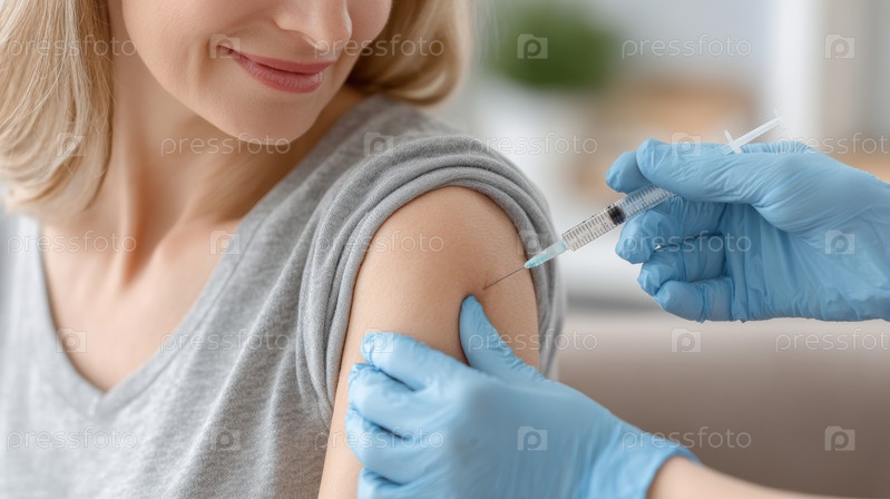 Процесс вакцинации, вводящий инъекцию вакцины в руку для здоровья и иммунизации