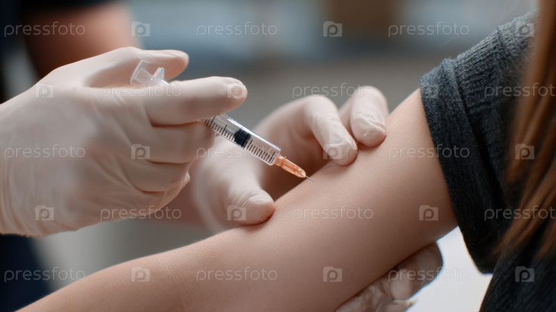Процесс вакцинации, вводящий инъекцию вакцины в руку для здоровья и иммунизации