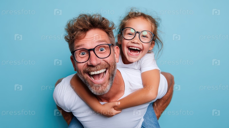 Счастливый отец дарит своей дочери поездку на копилке, оба радостно улыбаются в яркой, игривой обстановке