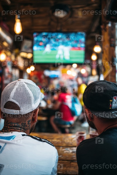 Страстный фанат наслаждается захватывающим футбольным матчем в уютном баре в окружении друзей и смеха