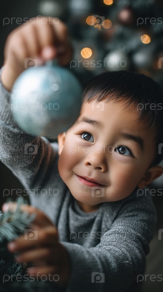 Счастливый ребенок наслаждается праздником, Игривый мальчик взволнованно смотрит на рождественские огни, Нетерпеливый малыш наслаждается мерцающими украшениями радостного отдыха