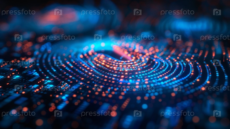 Светящаяся синяя сеть данных с узлами и частицами, погружение в боке и глубокая глубина резкости, динамические связи, предполагающие ai вычисления и квантовые