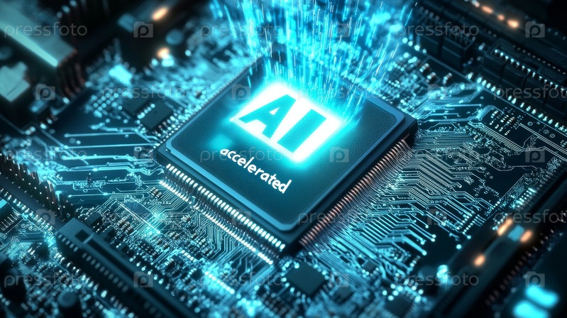 Продвинутый мобильный микропроцессор Подключение к материнской плате и активация всей системы. 'AI ускорился' на Chip Glowing