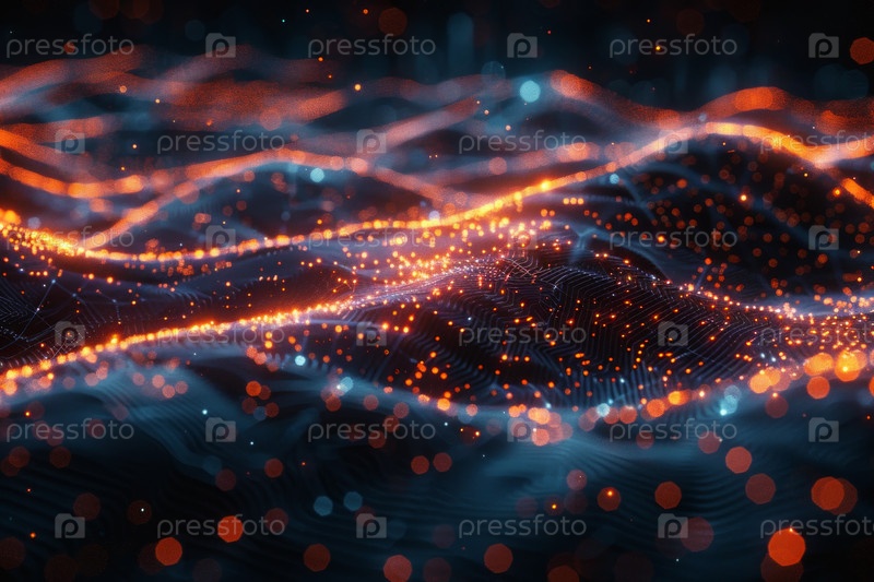 Яркий абстрактный цифровой фон с динамическими светящимися частицами и волнами в движении для технологических тем