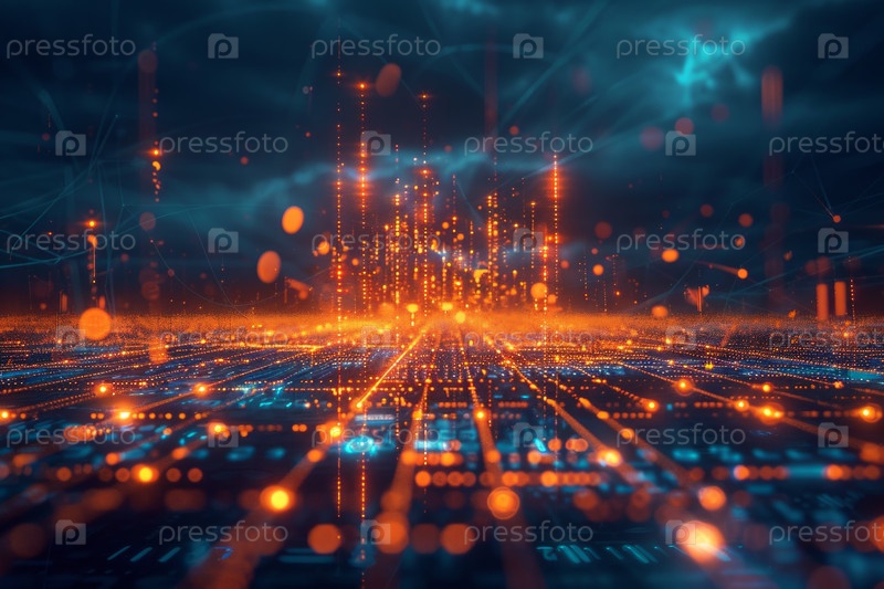 Яркий абстрактный цифровой фон с динамическими светящимися частицами и волнами в движении для технологических тем