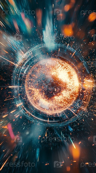 Абстрактное представление вращающихся галактик, наполненных яркими цветами, динамическими узорами и светящимися частицами