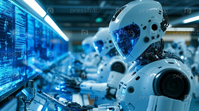 Захватывающая линейка высокоразвитых гуманоидных роботов, представленных в передовой, технологической обстановке