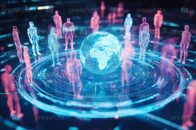 Исследуйте яркий цифровой мир с потрясающими голографическими фигурами в прекрасно освещенной глобальной сфере