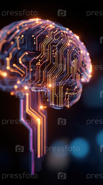 Освещенная абстракция мозга с эффектом неоновой медузы, демонстрирующая яркие цвета