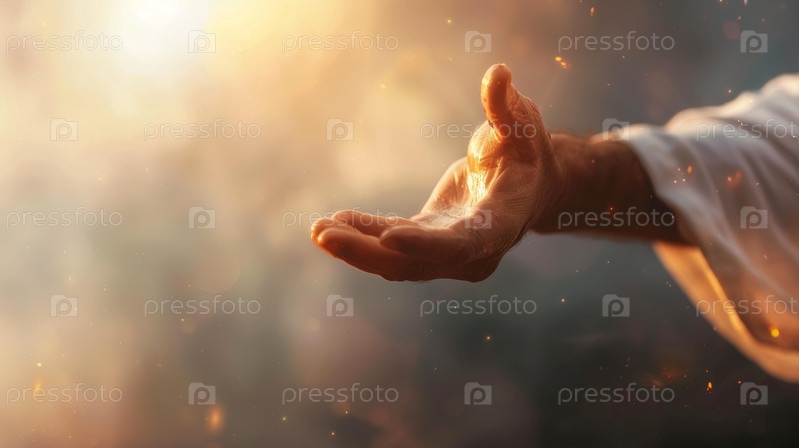Иисус Христос, отдающий руку, жесты рук Иисуса, умирающего на кресте и воскресшего,