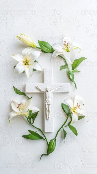 Простой дизайн пасхального креста с лилиями вокруг него